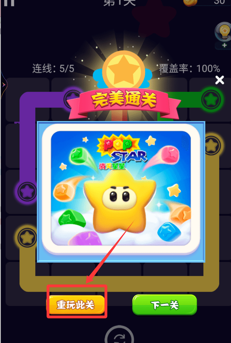 3、当所有星星都正确连接后,就会出现完美通关的画面。