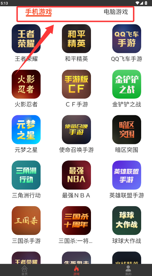 2、进入主界面后,浏览最新公告了解平台规则,随后可在“全部游戏”或分类列表中查找目标游戏,例如“王者荣耀”、“和平精英”等热门手游均会在此展示。