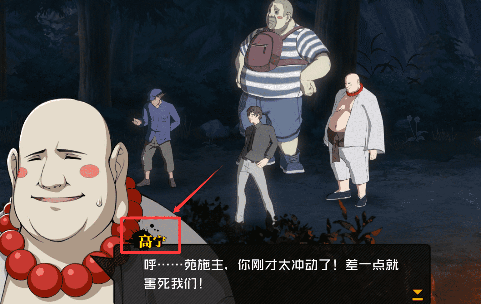 2、在触发与“高宁”的对话剧情时,他会对“苑施主”的行为做出反馈。