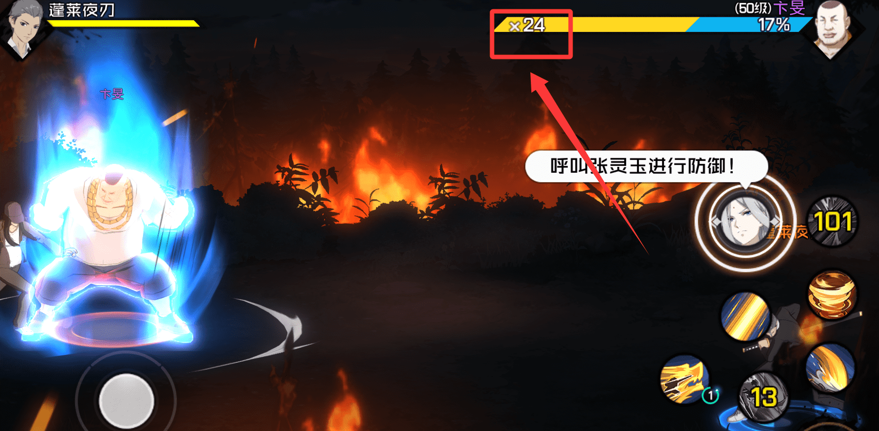 1、面对“蓬莱夜刃”战局时,要注意左上角等级与血量的变化。